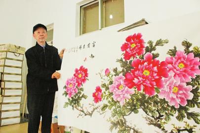 刘金元向记者展示自己画的牡丹 记者崔丹 摄本报记者 崔丹
