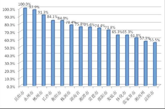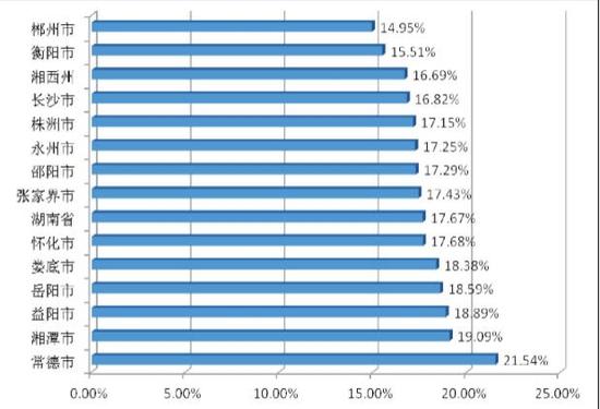 (图为:各市州60岁以上老年人口常驻人口比例排序)