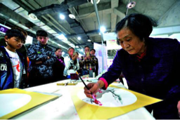 10月16日,在本届文博会焦作市美术家协会的展区里,有一位衣着普通的老太太周围挤满了人,只见她提笔蘸墨,寥寥几笔,朵朵梅花就绽放在了纸上,人群中不时传出赞叹声。画画的老人叫茹伦华,今年74岁,她在退休后拿起了画笔?!盎欢嗔?,我要赶紧多画几幅。”10月16日上午,茹伦华一到展位前便拿出笔开始画画,几乎没时间和记者说话。