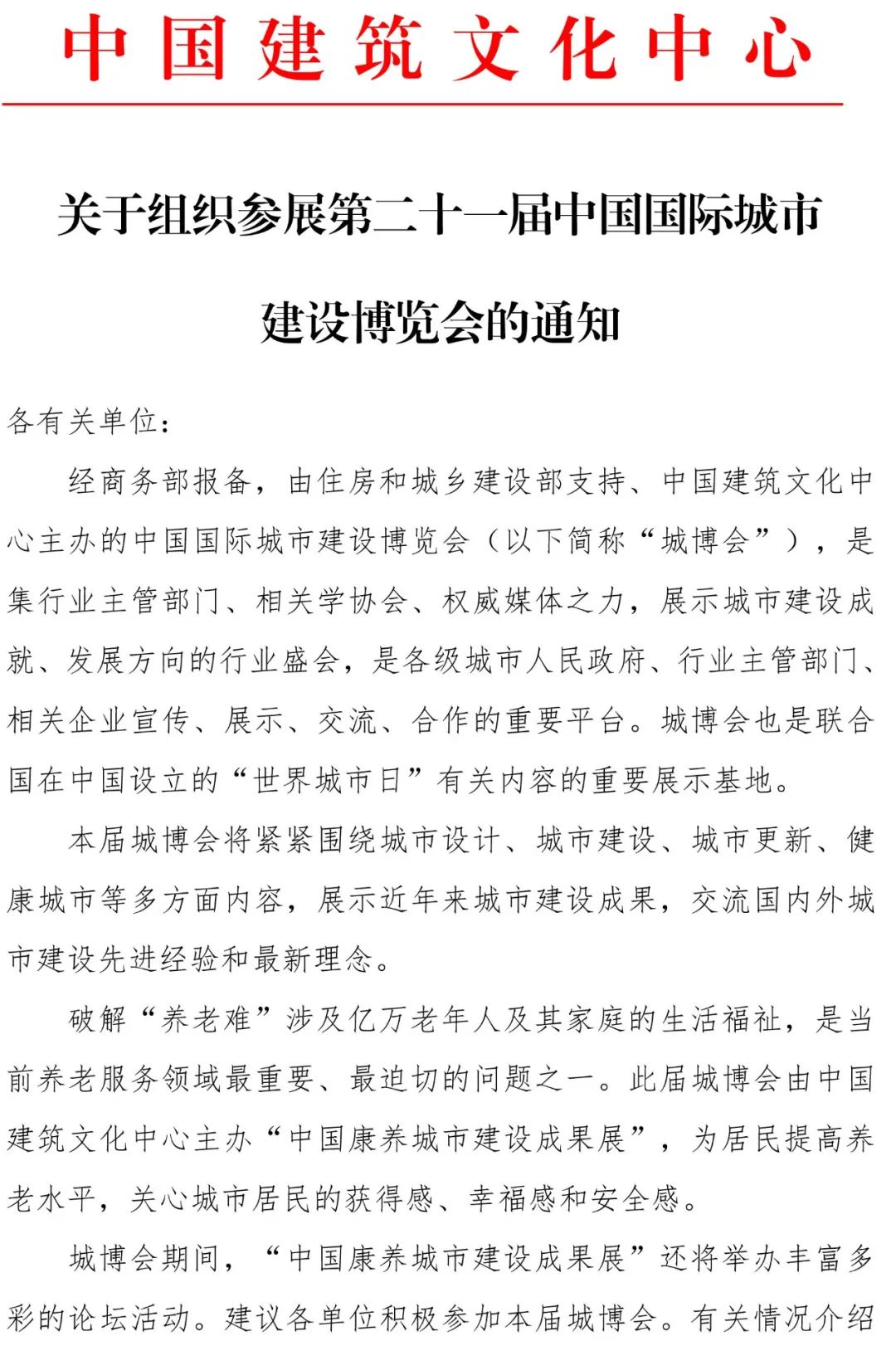 关于组织参展第二十一届中国国际城市建设博览会的通知